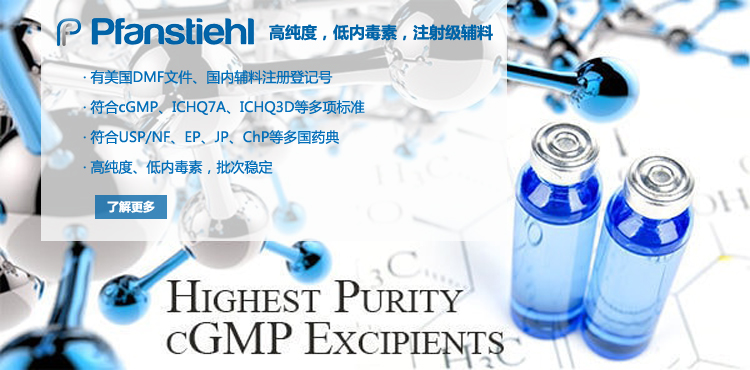 “熱烈祝賀Pfanstiehl的注射級甘氨酸Glycine(G-140)喜獲CDE登記號F20250000403, 這是Pfanstiehl產品獲得的第18個CDE登記號!”甘氨酸在醫藥輔料制劑中應用廣泛,, 可作為緩沖劑,增溶劑,穩定劑等,具有諸多優勢。Pfanstiehl秉承一貫高品質理念,為滿足全球生物制藥行業對于高品質甘氨酸的需求,隆重推出的注射級甘氨酸Glycine (G-140), 具有超高純度,超低內毒素,超低金屬殘留的特點,單獨檢測29種金屬離子,并且新增DNA,RNA,DNA酶,RNA酶和脂肪酶,亞硝酸鹽等多項質量指標的檢測,符合多國藥典規定(USP, EP, BP, JPE, ChP),可用于生物治療性藥物和疫苗的生產。產品信息:· 產品名稱:Glycine, High Purity, Low Endotoxin, Low Metals, USP, EP, BP, JPE, ChP (G-140)· 中文名稱:甘氨酸· 分子式:C2H5NO2· 分子量:75.07 g / mol· CAS號:56-40-6· 產品貨號:G-140產品特點: · 超高純度,超低內毒素,超低微生物含量,超低金屬雜質殘留· 質量指標新增DNA,RNA,DNA酶,RNA酶,脂肪酶和亞硝酸鹽檢測· 符合多國藥典:USP, EP, BP, JPE, ChP· 符合ICH Q3D標準· 符合GMP標準· 已獲DMF和CDE登記號 產品應用:· 緩沖劑· 穩定劑· 增溶劑如果您對Pfanstiehl注射級別Glycine G-140感興趣,歡迎聯系Pfanstiehl 中國區代理商北京西美杰科技有限公司獲得如下詳細的產品概況說明文件和測試樣品。Pfanstiehl Inc.最新產品系列如下,歡迎聯系北京西美杰科技有限公司獲取100g裝免費樣品。北京西美杰科技有限公司為Pfanstiehl中國代理,為客戶提供完善的技術支持與售后服務。歡迎撥打西美杰客服電話400-050-4006或者登陸網站www_xmjsci_com.299ysw.com了解更多信息。 更多>